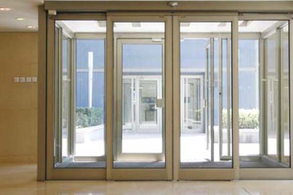 平移自動門從理論上理解應該是自動門的概念的延伸,是門的功能根據人的需要所進行的發展和完善。平移自動門的結構組成是電源、控制器、電機、傳動部件(如傘型齒輪結構)和連接活動扇的五金件。平移自動門工作時,通過平移門電機齒輪轉動帶動與門體連接的齒條,實現門體在預埋的軌道 上左右滑動,選用遙控器為單鍵操作模式,命令為“開-停-關-停”的 循環命令。